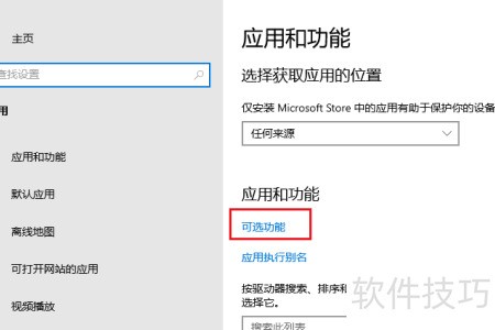 3、 进入应用与功能,选择可选功能选项。