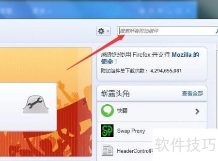 2、 进入附加组件界面,在搜索框输入firebug,点击搜索按钮即可查找。