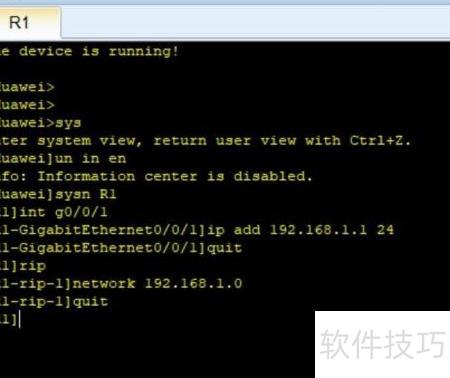 4、 执行display rip 1 route、display ip routing或ping命令,检查路由信息与网络连通性,确认配置是否生效并完成验证。
