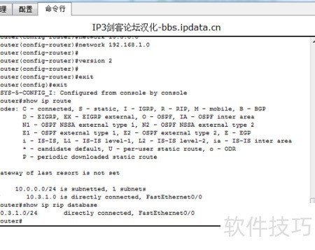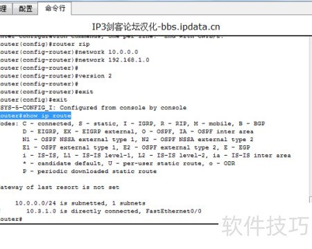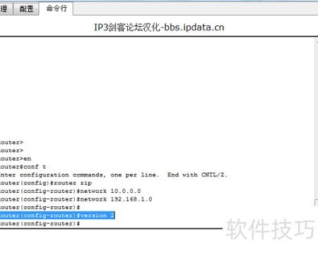 11、 在路由器配置模式下启用RIP协议的第二版本,以支持更高效的路由信息交换和子网掩码传递功能。