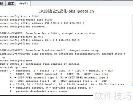 2、 两台路由器的S0接口通过DTE与DCE相连时,需配置时钟频率命令以确保线路同步通信。