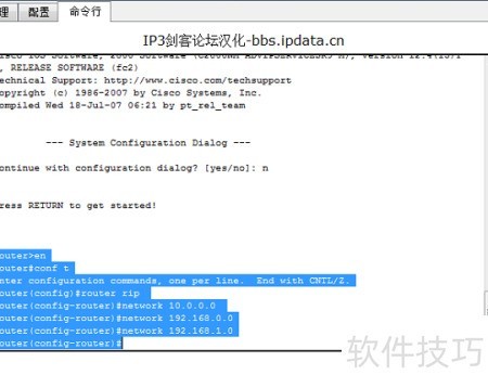 7、 二楼:设置路由器1,启用RIP路由协议。