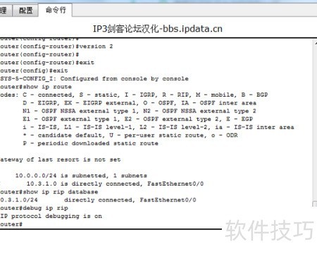 13、 查看RIP数据库:确认各接口状态是否正常开启,验证各接口IP能否成功连通下一跳地址,检查每台设备上RIP协议是否准确通告了所有网段信息。