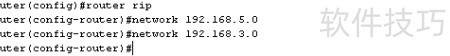 4、 R3路由器的配置为:连接R2的端口IP地址是192.168.5.0,连接PC的接口IP地址为192.168.3.3。