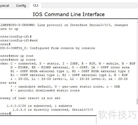 6、 返回特权模式后执行show ip route命令,若显示带有R标识的IP地址,说明交换机已成功学习到其他设备的路由信息。