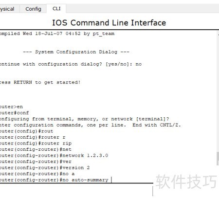 5、 在版本2中,若为有类路由需使用no auto-summary关闭自动汇总,否则无需配置;而版本1不支持此命令。