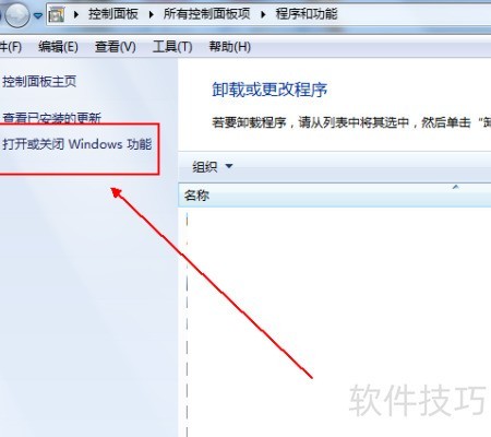5、 在程序和功能界面左侧,选择启用或关闭Windows功能进行设置。