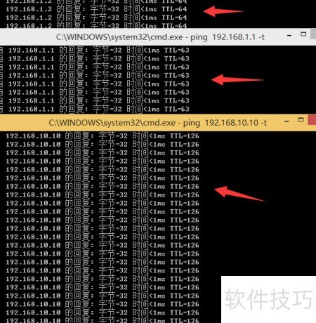 26、 在PC2上执行路由测试,分别对IP地址192.168.1.1、192.168.1.2和192.168.10.10进行Ping操作,确认网络连通性正常,所有目标地址均可成功通信。