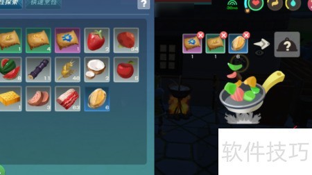 10、 将蓝莲饲料、小麦饲料与钓获的鲍鱼放入烹饪锅,启动即可开始烹制。