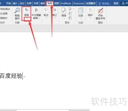 1、 双击打开Word文档,选择审阅选项卡中的语言功能,按图示操作即可。