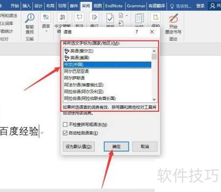 3、 选择所需校对语言,确认后即完成设置,你掌握了吗?