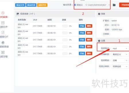 6、 文件上传后,用户应在软件右侧的格式下拉菜单中选择MP4作为输出格式。随后指定输出目录文件夹,转换完成后的MP4文件将自动保存至该指定路径中,方便后续查找与使用。