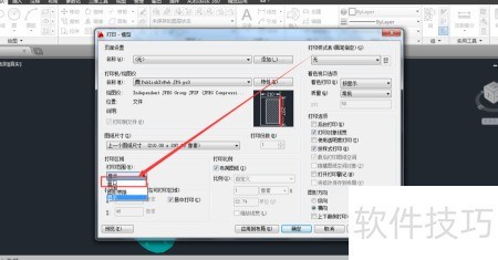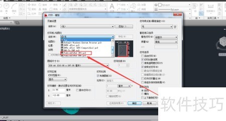 3、 第三步,打开打印设置窗口后,点击红色框选区域,选择所需的文件输出格式。