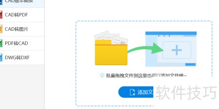 3、 选择转换类型后,点击添加文件按钮,或直接将需转换的文件拖入指定区域即可。