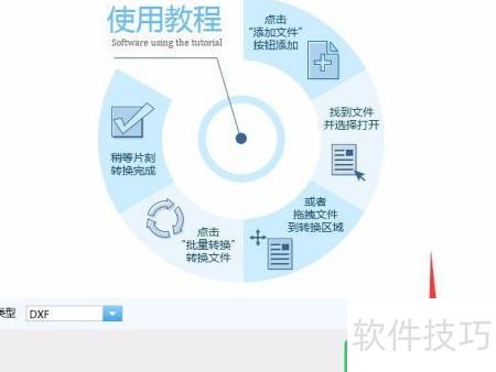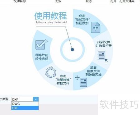 4、 添加文件后,在界面底部找到输出类型,点击其后的按钮,选择DWG或DXF格式即可。