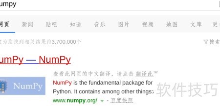 1、 用百度搜索并进入Numpy官方网站