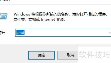 1、 按下Win+R键,打开运行窗口,输入cmd并回车,启动命令提示符程序,操作步骤见下图所示。