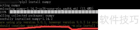 2、 接下来将安装第三方库,首先安装numpy库,它提供数组支持及高效处理函数,安装步骤所示。