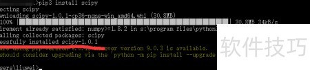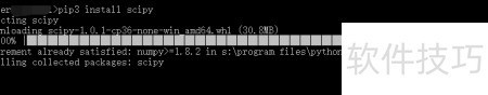 3、 安装scipy库以支持矩阵运算及相关数值计算功能,操作步骤见下图。