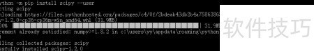 4、 在命令提示符中执行 python -m pip install scipy --user,即可完成 scipy 的安装。