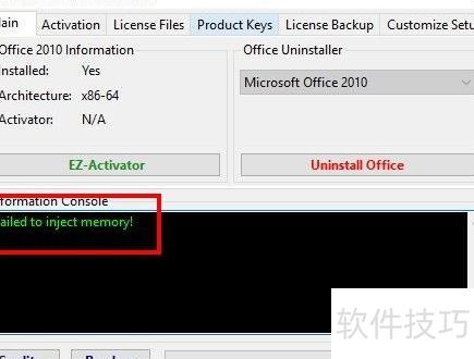 1、 使用Office 2010激活工具后,系统提示内存注入失败,出现弹窗报错问题。