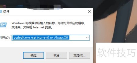 5、 按下Win+R键,输入bcdedit.exe /set {current} nx AlwaysOff,随后会迅速弹出一个命令提示符窗口,执行相应操作即可完成设置,过程简单快捷,适用于需要关闭数据执行保护的场景。