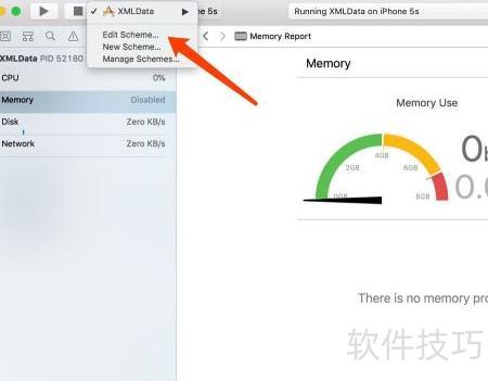 3、 在顶部导航栏点击工程名称,选择弹出菜单中的Edit Scheme…进入编辑界面,操作步骤如下所示。