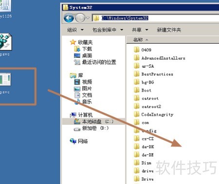 6、 将C:Windowssystem32目录中的sspsvc.exe文件复制,并覆盖目标电脑相同路径下的同名文件,操作方式与之前一致。