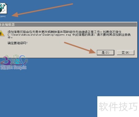4、 将导出的sppsvc注册表文件复制至故障电脑并导入恢复。
