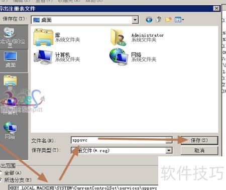 5、 在导入sppsvc注册表前,建议先对问题电脑中的相关注册表项进行备份,以防出现意外情况导致系统异常。