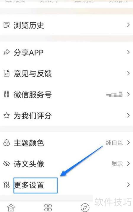 1、 进入古文岛应用,点击个人页面,选择更多设置功能。