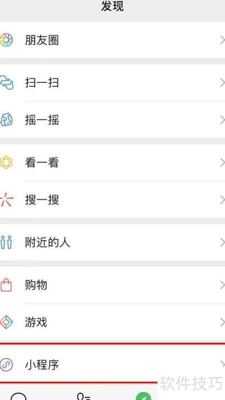 5、 打开微信,点击发现,进入小程序