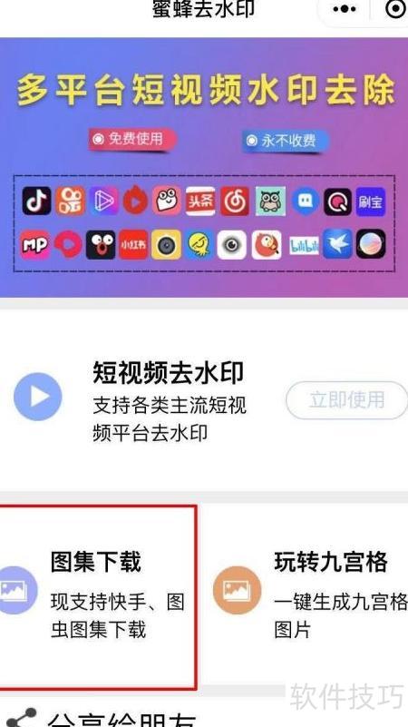 6、 进入蜜蜂去水印功能,选择图集下载选项。