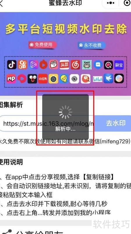 7、 系统将自动识别云村复制的链接,若未自动解析或解析出错,可手动点击去水印完成解析操作。