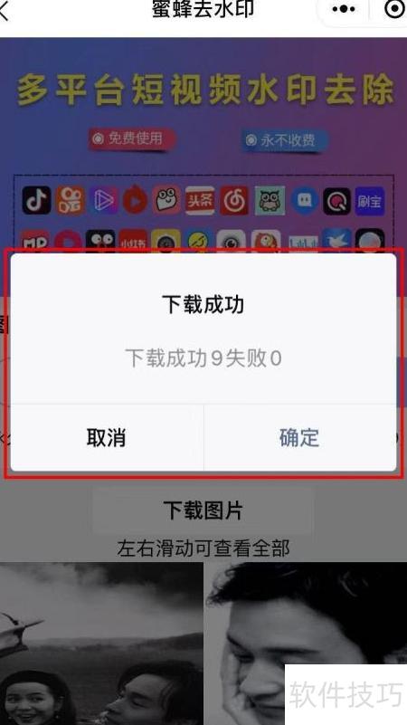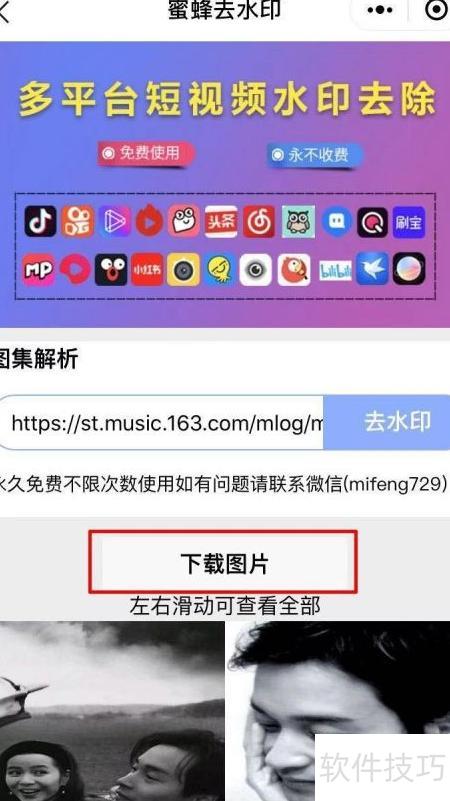 8、 解析完成后,页面将显示下载图片按钮,滑动可浏览全部图片,点击即可下载。