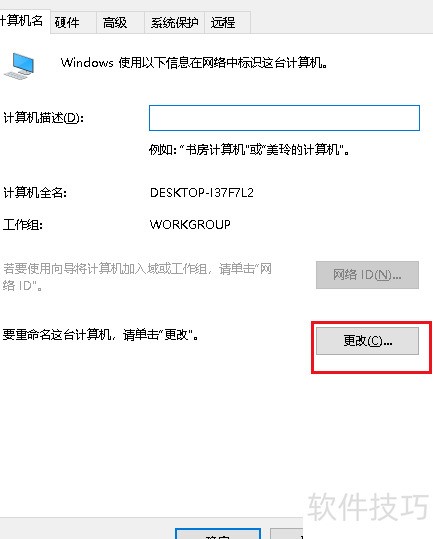2、 弹出窗口中显示当前工作组为WORKGROUP,若需退出,请点击右侧的更改设置选项进行操作。