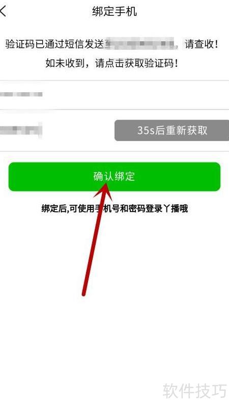4、 输入手机号后点击获取验证码,填写收到的验证码,最后确认绑定完成操作。