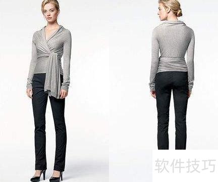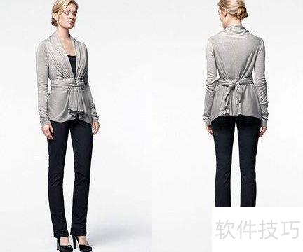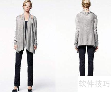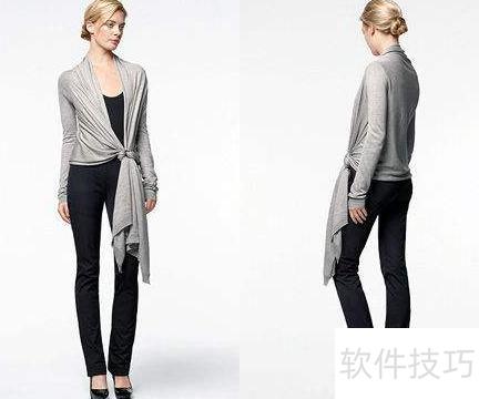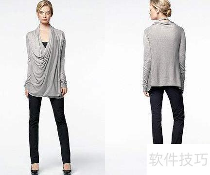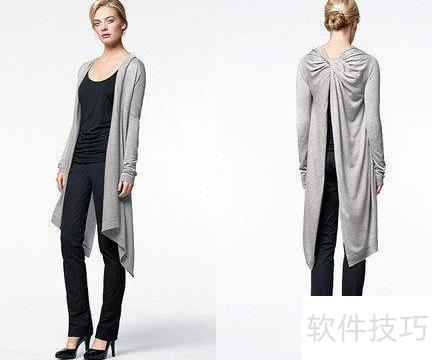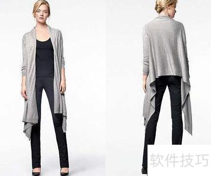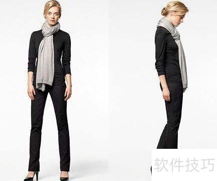 1、 将围巾展开至双臂宽度,从中间环绕身体,形成经典的披肩造型。