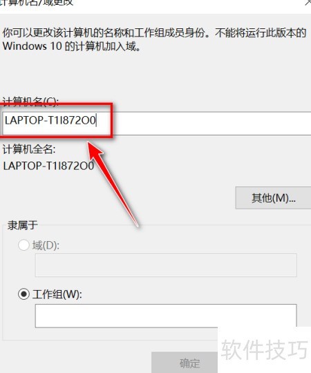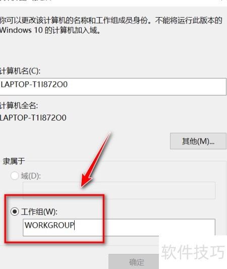 6、 选择工作组并填写WORKGROUP即可完成设置