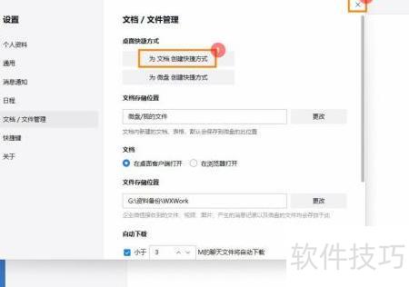 4、 在文件管理页面,选择创建快捷方式后,点击X完成操作。