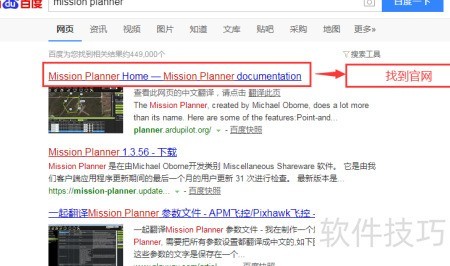 2、 访问官方网站,点击进入MissionPlanner功能页面。