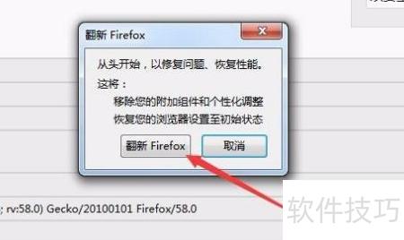 5、 此时会弹出确认重置浏览器的窗口,只需点击重置Firefox按钮即可完成操作。