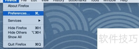 2、 打开后,电脑主菜单会显示相应选项,点击Preferences即可进入Firefox浏览器的设置界面,操作简便直观。