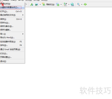 2、 点击文件,选择新建站点并使用模板。