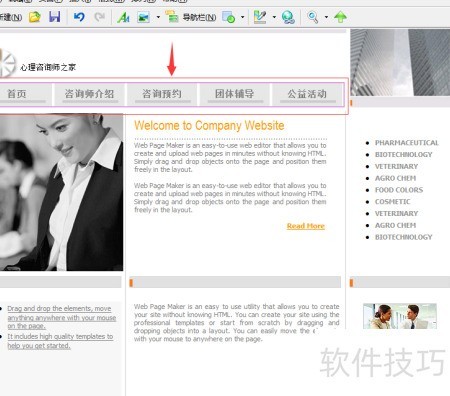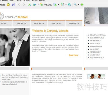 5、 已打开先前选择的网页模板。