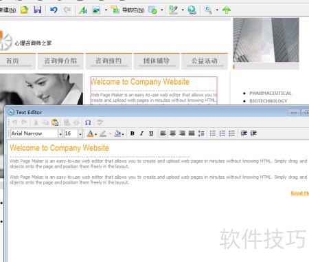 6、 双击网页文字即可启动文本编辑器进行编辑。