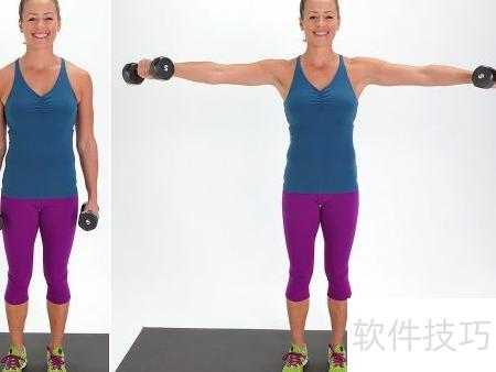 12、 双手持哑铃自然下垂,三头肌发力将哑铃侧平举至与肩齐平,再缓慢还原。
