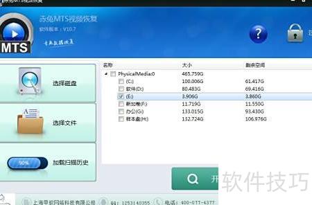 1、 点击选择磁盘按钮,勾选需扫描恢复的磁盘。若要修复损坏的MTS视频文件,则选择选择文件功能,随后启动扫描,软件将在扫描过程中自动对文件进行修复处理。