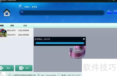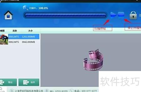 5、 在扫描界面中,可对已扫描到的MTS视频执行排序、预览、导出及合并操作。其中,排序按视频文件大小从大到小排列,预览用于播放恢复的视频内容。按住Ctrl键可多选文件,使用Ctrl+A则可一键选中全部视频,便于批量处理与管理。