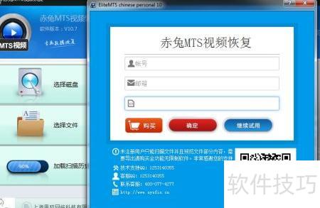 下载并安装最新版MTS视频恢复软件(版本10.7),以管理员权限运行,启动后将显示主操作界面。